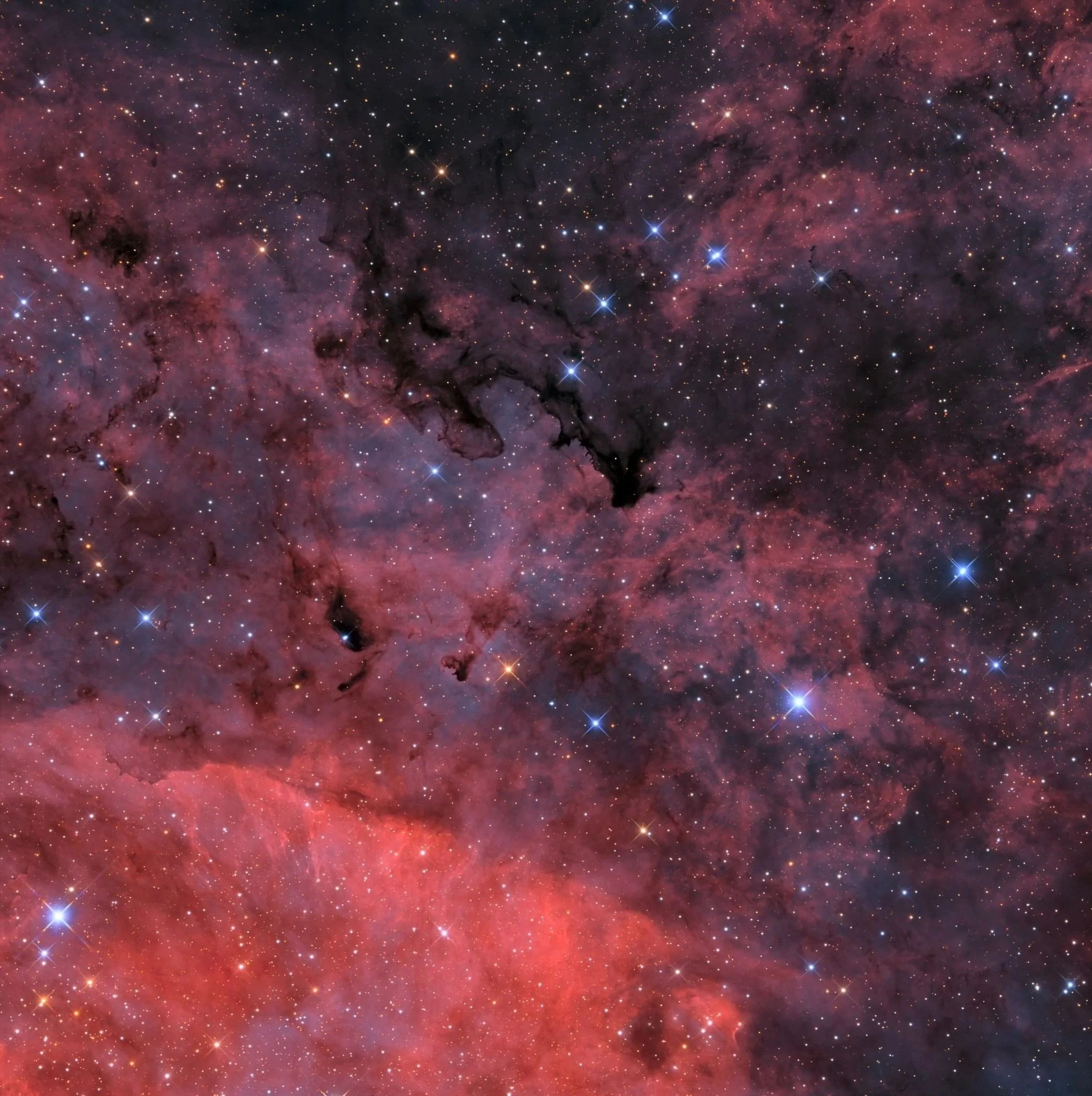 In the center BARNARD 344 a dark nebula in the constellation Cygnus. It is located near the star Sadr in the Gamma Cygni nebula (RA: 20h18m57.4s DEC: +40º 40′ 01″).