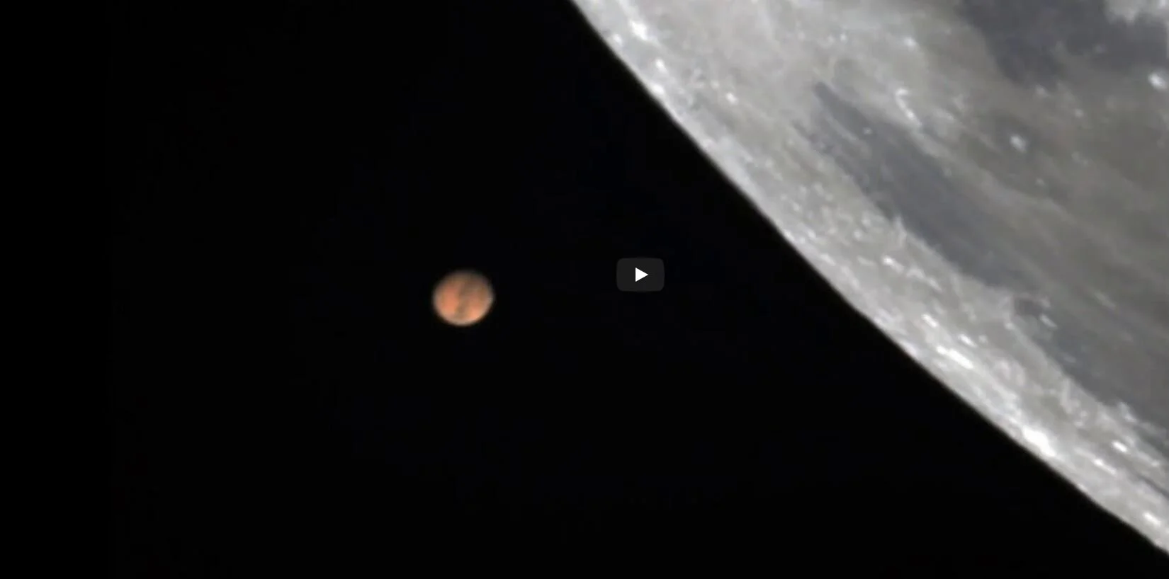 Image Description and Details : On 06/09/2020 (at dawn) I took a video of Mars being hidden by the Moon from Granada (Spain) with a 8" newtonian and a ZWO ASI planetary camera. The video was speeded up as its real duration was about 20 minutes.
