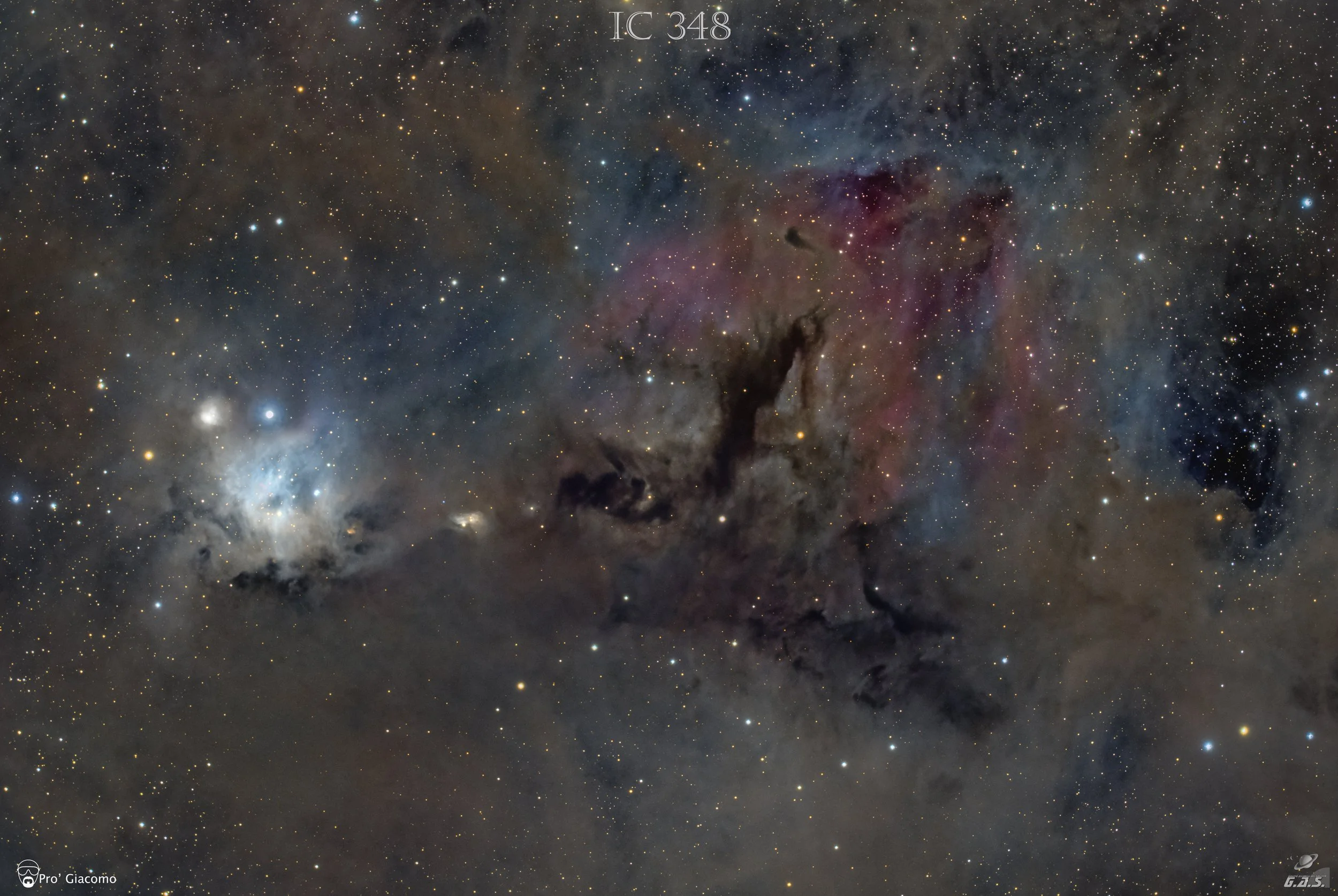 In alto a sinistra nello splendido paesaggio del cielo c'è l'affascinante giovane ammasso stellare IC 348 e la vicina Flying Ghost Nebula alla periferia della gigantesca nuvola molecolare di Perseo, a circa 850 anni luce di distanza. Altre nebulose polverose sono sparse nel campo visivo, insieme al debole bagliore rossastro dell'idrogeno gassoso.