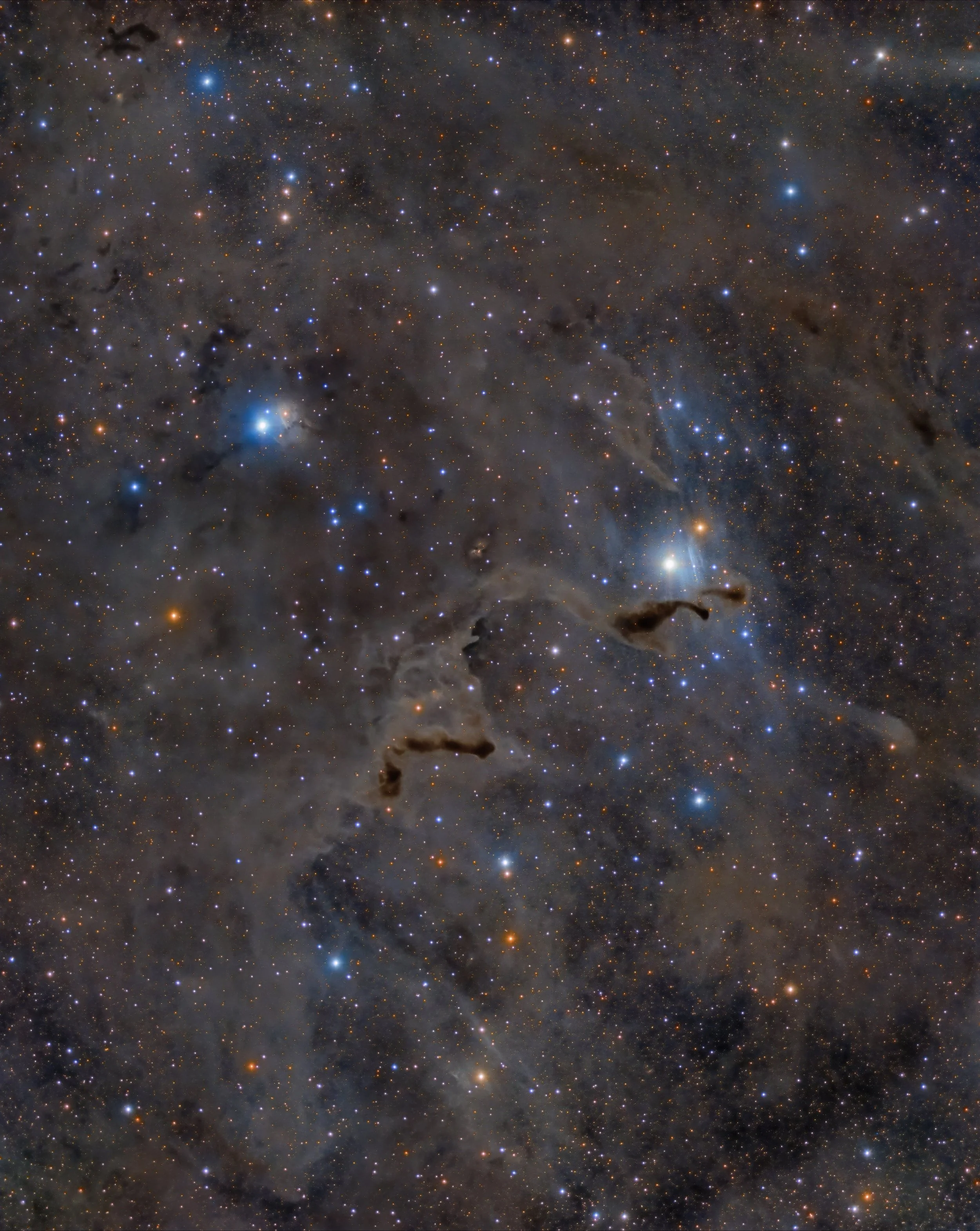 These dark nebulae lurk in the stellar lairs of the Milky Way. They often connect with the sites of low-mass star formation, but can also float in the arms of the Milky Way as simple cold molecular clouds. They do not have their own light in the visible range and are more recognizable by obscuring more distant stars. And if the astrophoto is taken with long exposure, its brownish color can be seen in the light of nearby stars.