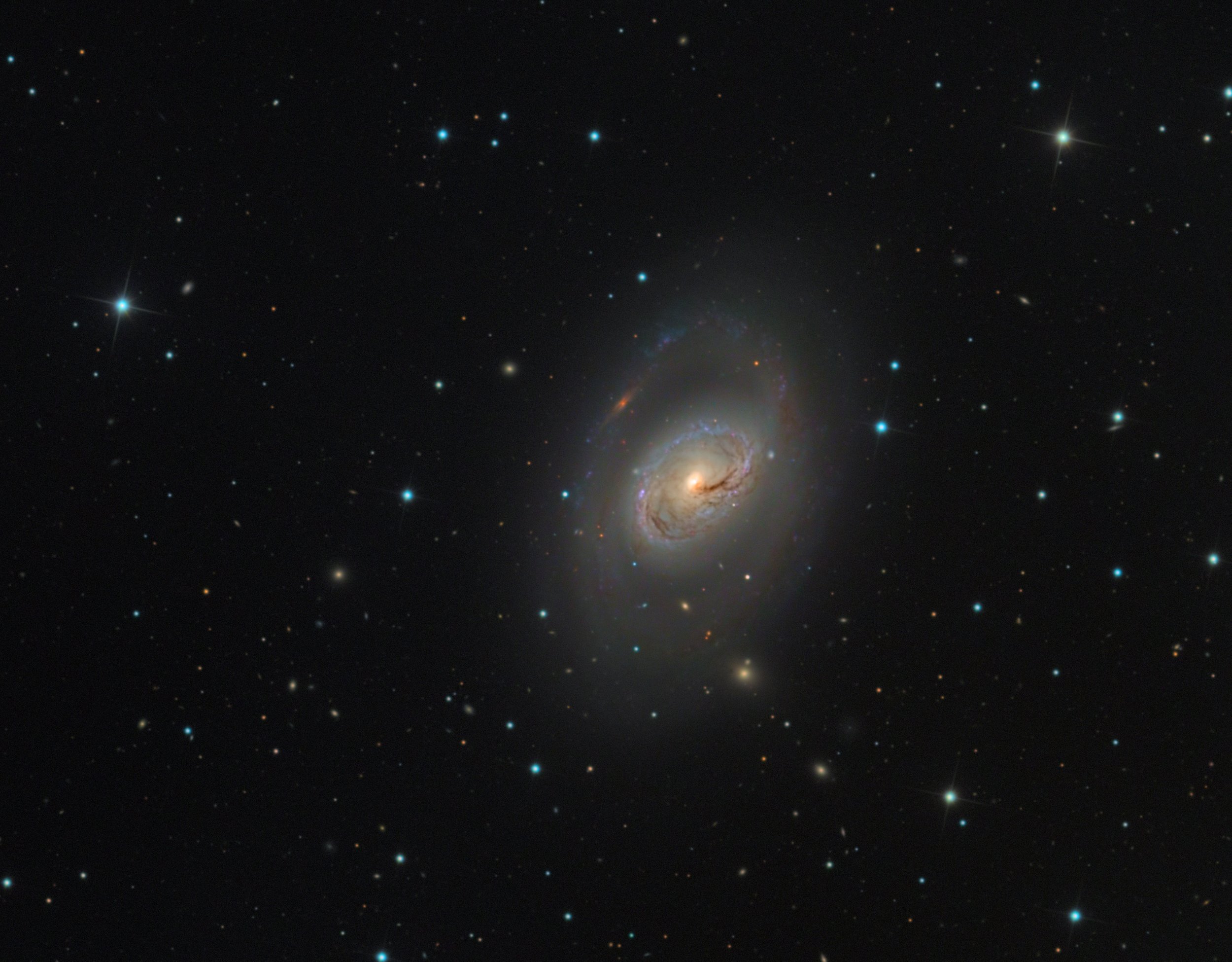 Image Description and Details : M96 is a lovely distrurbed spiral about 31 million ly distant. The most interesting feature to me is the needle galaxy 2MFGC 8391 we see through the arm of M96. This needle is the spitting image of NGC 891 but more distant at about 150 ly away. M96 appeared to me initially as a one-arm galaxy but is described as a double barred spiral.