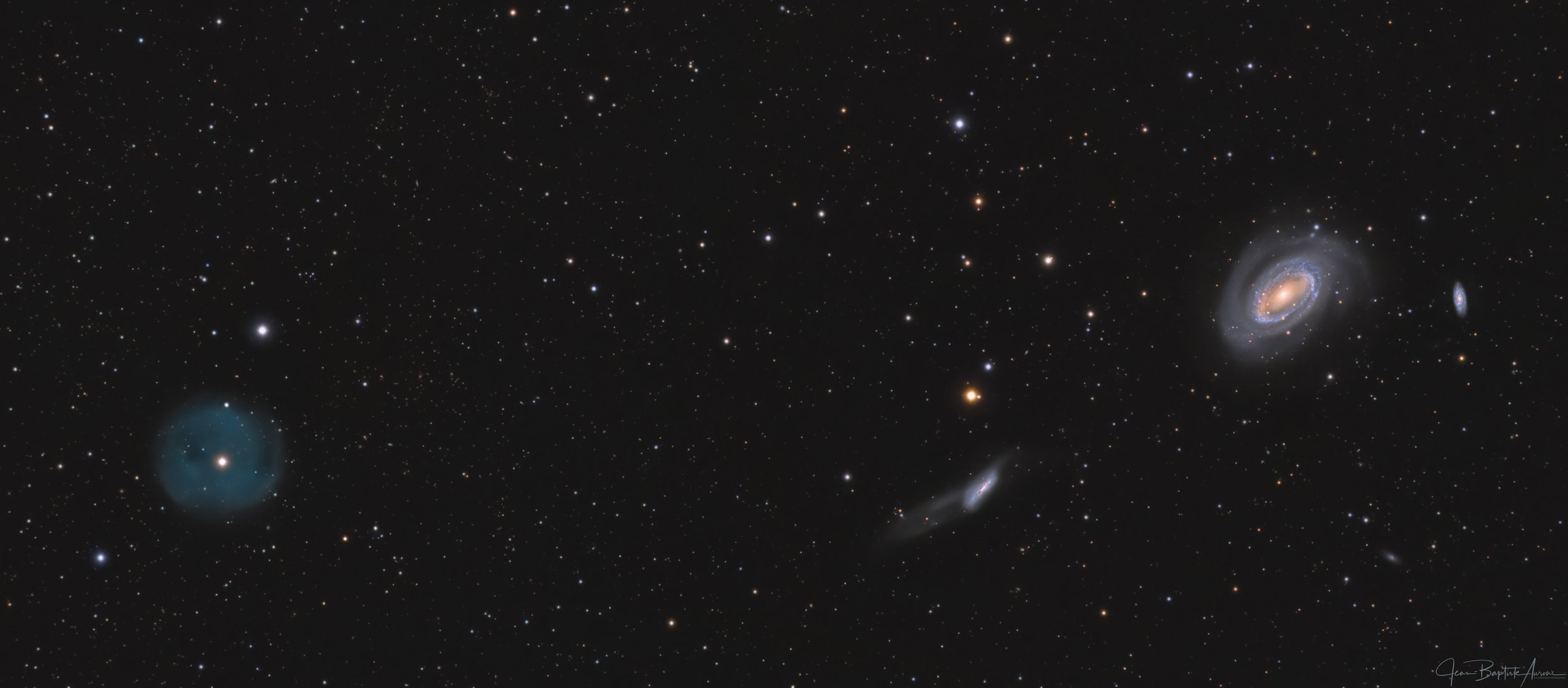 Here is a mosaic of 2 images with the main galaxies of the group NGC 4725 (located at about 55 million light-years) and the planetary nebula LoTr5, discovered in 1980 and located "only" at 1650 light-years from us!