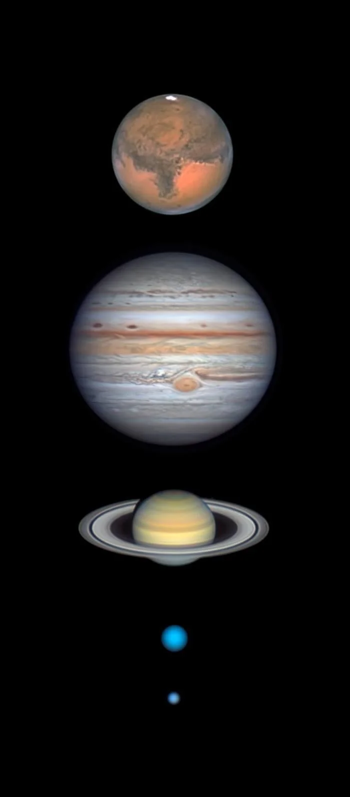 Grand tour of the outer planets from my backyard. Shot over the last 12 months with the fabulous Astro Physics 10" f/14.5 Mak-cass telescope and the QHY5III-462C color cmos camera. 37 degrees N. 100 ft el. Seeing can be very good at times.