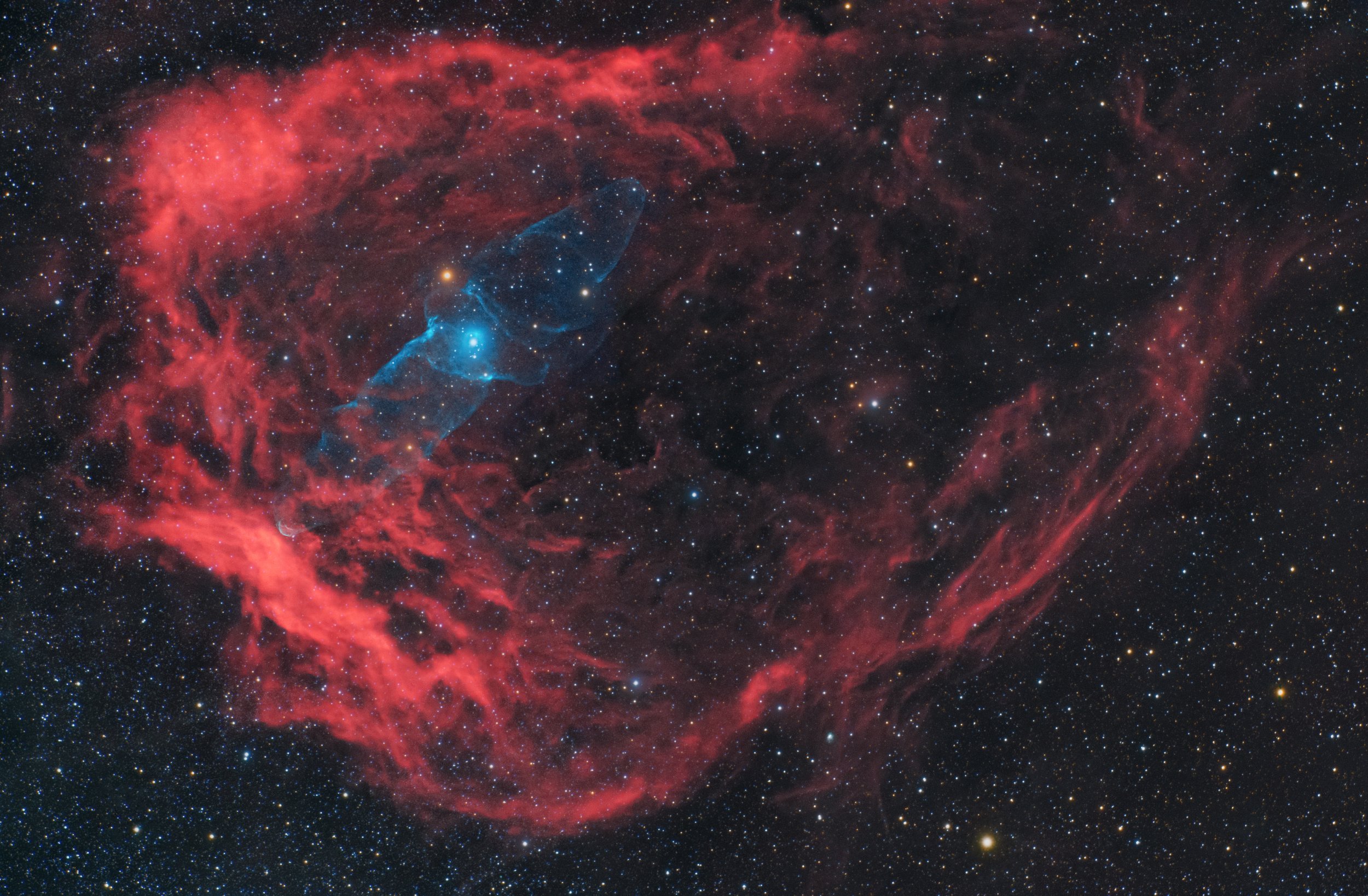 Image Description and Details : Sh2-129, also known as the Bat Flight Nebula, is a region of HII-type nebula emission located about 1,300 light-years from Earth in the constellation Cepheus. We can see another nebula, the Squid Nebula (Ou4), located at a distance of about 2300. It is a very weak nebula and requires many hours of integration to be able to appreciate it.