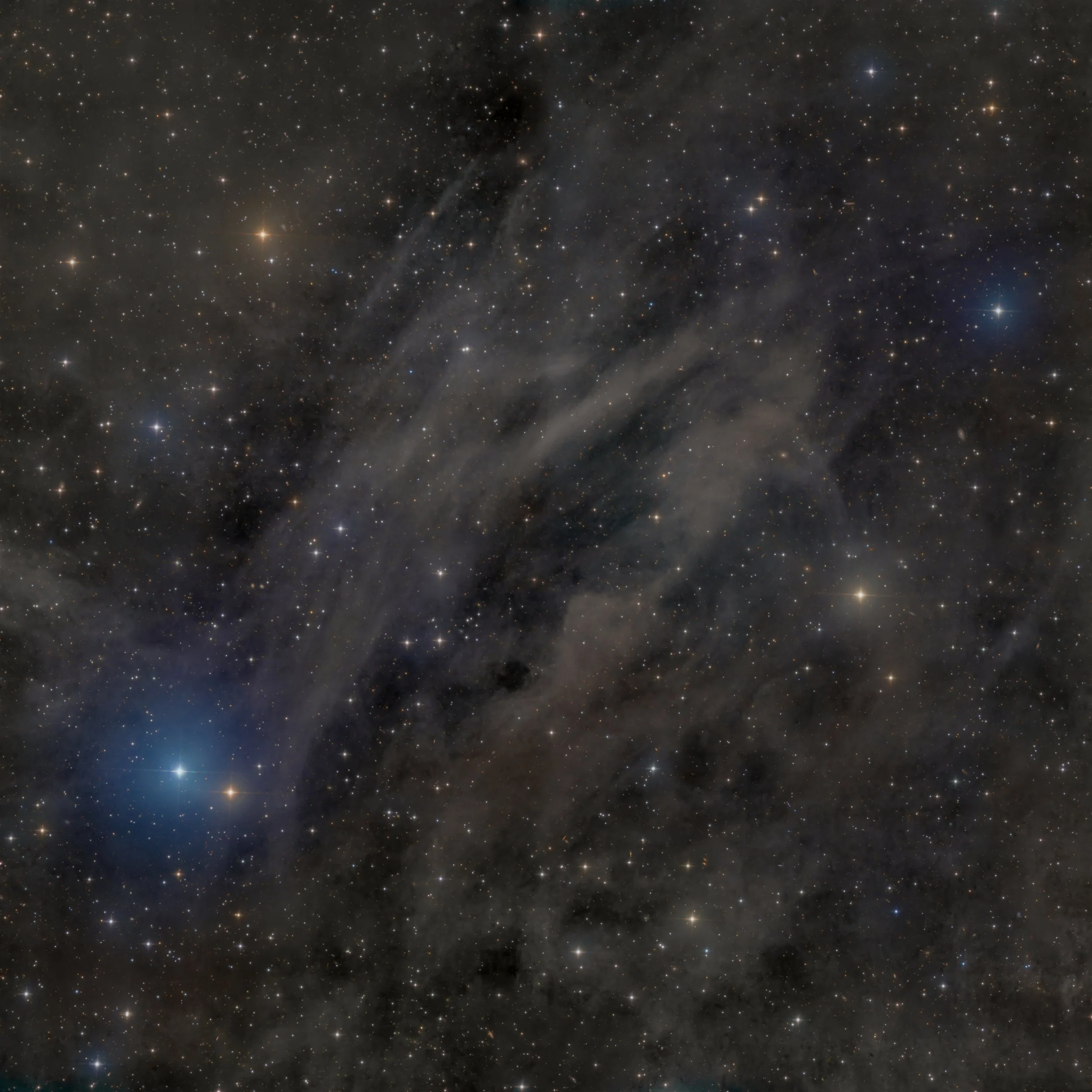 Image Description and Details : Sh2-73is located in the constellation Hercules and was mistakenly included in the Sharpless catalog as an emission nebula.We now know that the nebula is simply a molecular cloud. With its relatively high galactic latitude, about 45°, the integrated light of the galaxy illuminates the nebula.