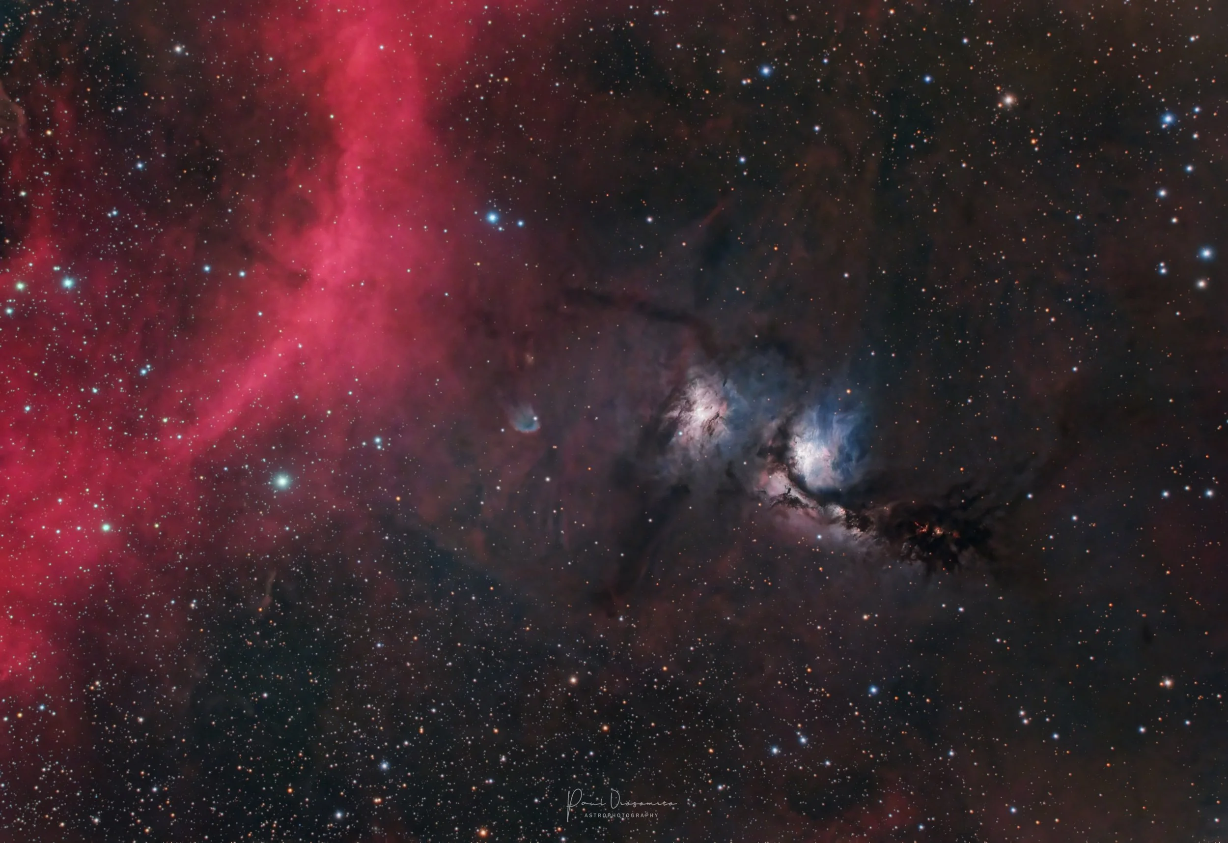 It’s one of the most beautiful reflection nebula I’ve ever imaged due to its morphological complexity and comet like blue reflection. Its proximity to Barnard’s loop made of bright Ha emission makes this target a popular wide frame image as well. Also refers as “Casper the Friendly Ghost” of the heavens. M78 is a stellar nursery of young hot blue stars reflecting off the surrounding dust clouds. 17 Herbig-Haro objects are identified within this nebula. HH are narrow jet steams associated with new born stars that collide with nearby clouds of gas and dust.