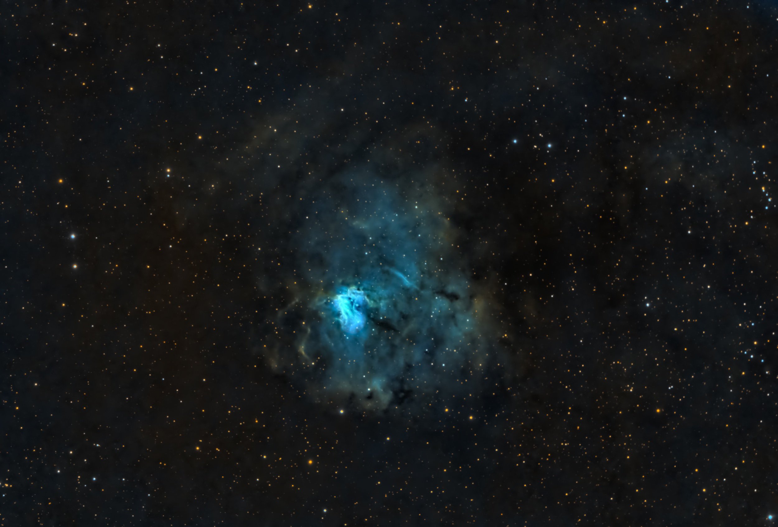 Imaging telescopes or lenses: Skywatcher 130PDSImaging cameras: ZWO ASI294MM ProMounts: Synta Sky-Watcher EQ6-r PROGuiding telescopes or lenses: Artesky 70/400 mmGuiding cameras: ZWO ASI290MM MiniFocal reducers: Sky-Watcher Coma corrector 0.9xSoftware: N.I.N.A. Nighttime Imaging 'N' Astronomy · Astro Pixel Processor · PixInshight · PHD2Filters: Astronomik 31mm 6nm SII Astronomik 6nm SII · Astronomik 31mm 6nm OIII Astronomik 6nm OIII · Astronomik 31mm 6nm Ha Astronomik 6nm HaAccessory: Pegasus power box micro · ZWO Off-Axis Guider · ASI ZWO EAF (Electronic Automatic Focuser) · ZWO 8x 1.25" Filter Wheel (EFW) ZWO 8X EFWDates:24 Nov 2021 , 25 Nov 2021 , 3 Dec 2021Frames:Astronomik 31mm 6nm Ha Astronomik 6nm Ha: 57x300" (4h 45') (gain: 120.00) -10C bin 2x2Astronomik 31mm 6nm OIII Astronomik 6nm OIII: 22x300" (1h 50') (gain: 120.00) -10C bin 2x2Astronomik 31mm 6nm SII Astronomik 6nm SII: 48x300" (4h) (gain: 120.00) -10C bin 2x2Integration: 10h 35'Darks: 30Flats: 20Flat darks: 20Avg. Moon age: 22.72 daysAvg. Moon phase: 49.61%Bortle Dark-Sky Scale: 5.00Mean SQM: 20.25Temperature: -3.67
