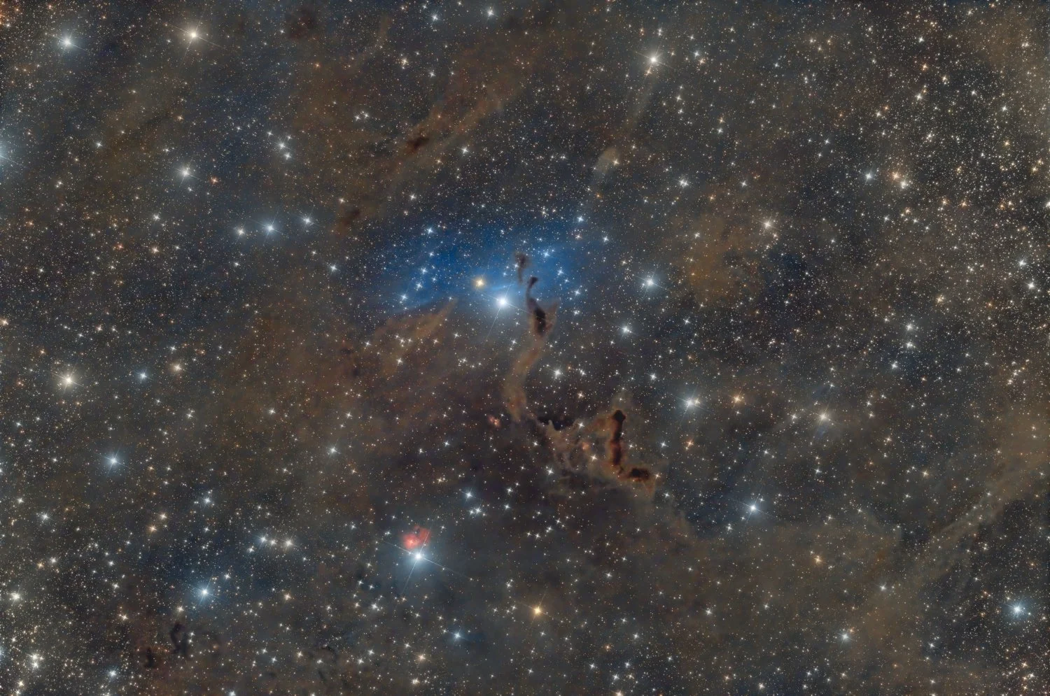 Image Description and Details: I present to you a dark nebula nicknamed LDN 1355 Located in the Constellation Cassiopeia, LDN 1355, together with the surrounding dark nebulae LDN 1357 and 1358, formed an interesting sight of an extended "helping hand". There is also a blue reflecting nebula VdB 9 lit by the star SU Cas. Then another reflective nebula VdB 7 with a hint of red and blue, surrounding a variable star RZ Cas.acquisitions: 413 exposures of 240s for a total of 27H30 Takahashi Epsilon 130DZWO ASI2600MC cameraL-pro filterIoptron mount CEM60-ECpixinsight and Photoshop processing Copyright: lamagat frederic