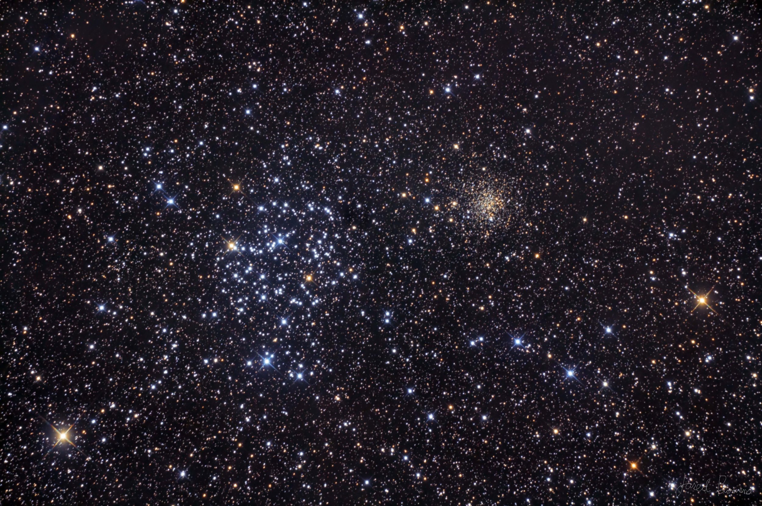 Image Description and Details : Here’s a capture of two star clusters. The large open cluster on the left is M-35 is a relatively close open cluster of stars in the west of Gemini.