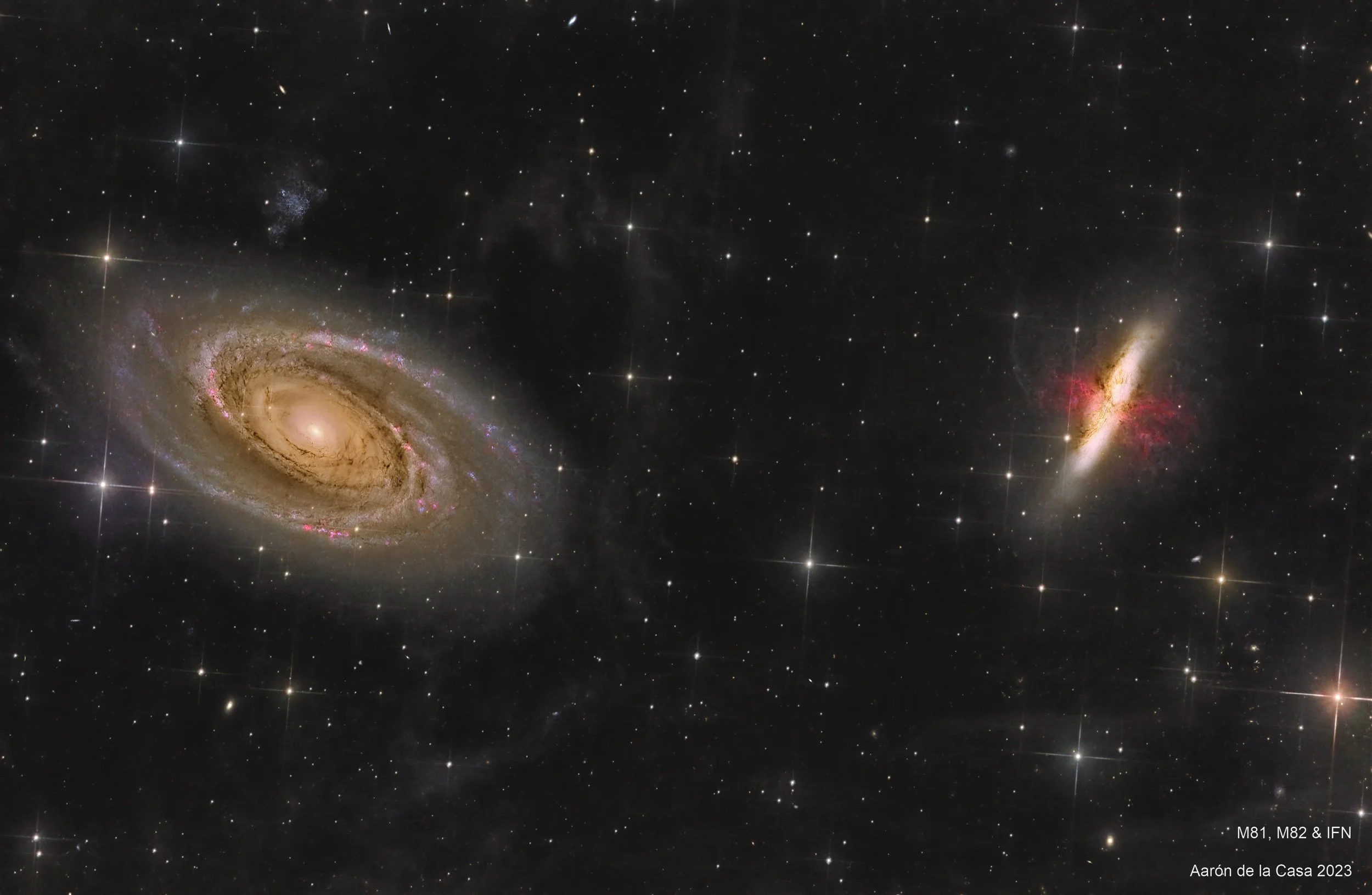 I removed the stars with StarXTerminator, before processing the image. Previously I had removed the natural colour (RGB) stars in processing the LRGB image and I was able to use Pixel Math to add them back to this finished image, to give a much more pleasing star field.