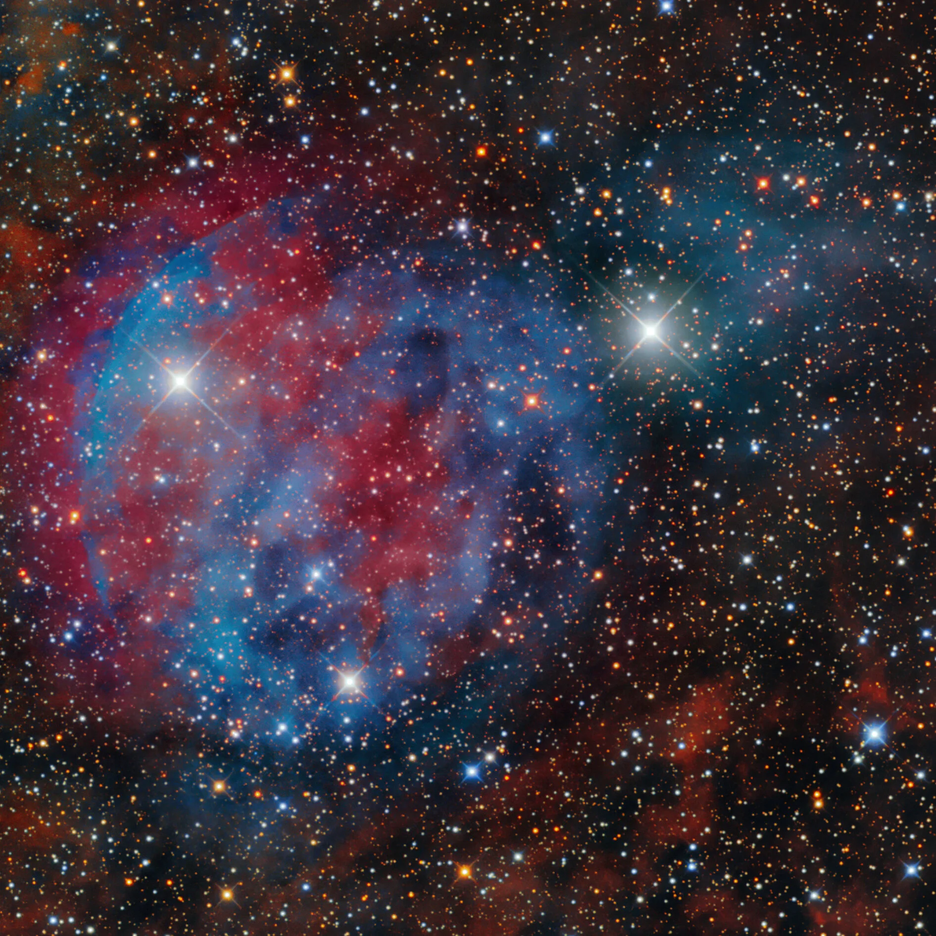 We want to thank our friend Patrick Dufour who photographed this nebula for around 20hrs from his remote observatory in Chile. He used a 12" AG Optical RC Telescope and QHY 600 Mono CMOS camera with SHOLRGB filter to capture the region. Since the object was only visible in OIII we asked him to capture as much OIII as possible and Patrick did a great job by collecting the data quickly - as the object was close to the horizon.
