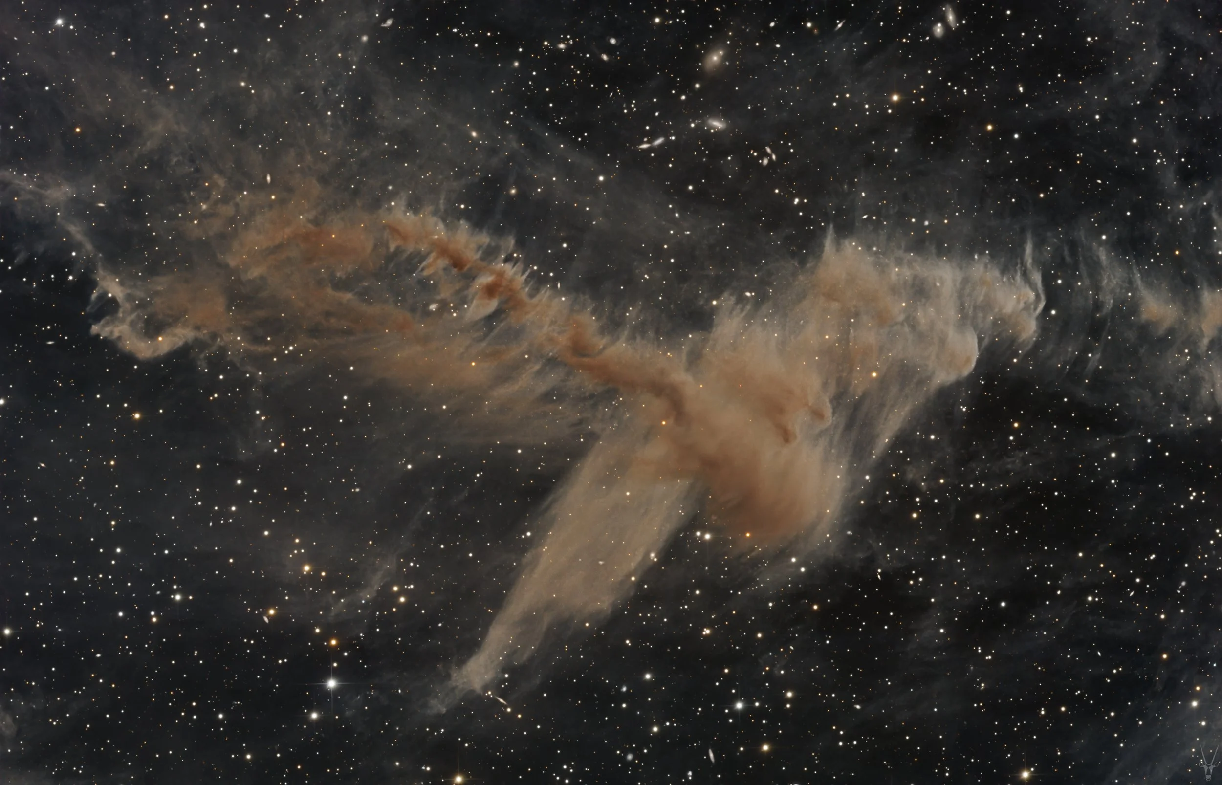 Galactic cirrus, also called integrated flux nebulae, are composed of fine dust particles illuminated by the combined light of the Milky Way’s stars. Though often overlooked due to their subtle glow, these wisps trace the structure of the interstellar medium in our galaxy's halo. First noticed in a wider-field view, this section was later revisited at longer focal length to reveal the intricate detail of the dusty structure drifting quietly in space.