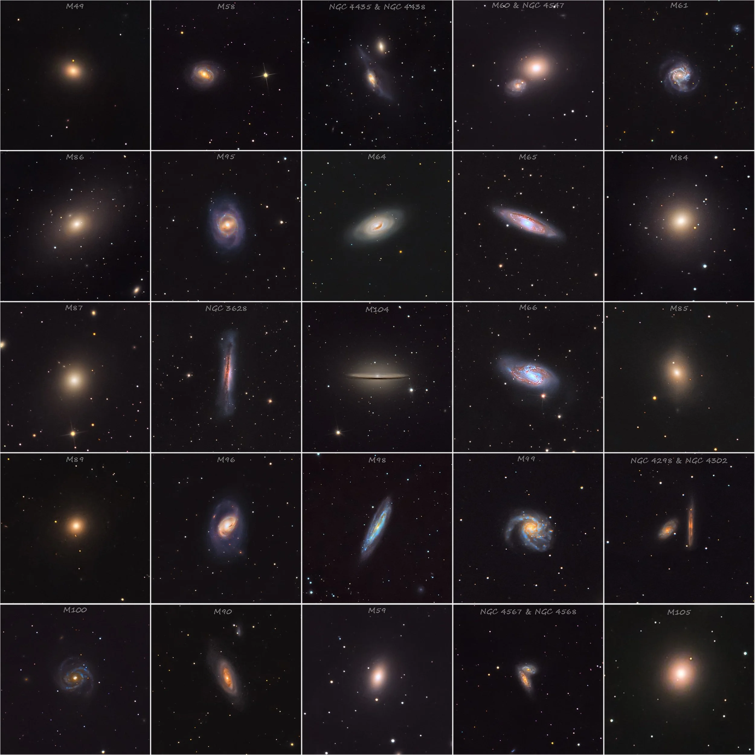Image Description and Details : In recent months, and more precisely from March 19th to June 5th, I have concentrated on shooting the portion of the sky between the constellations of Leo, Virgo and Coma Berenices. This is a very rich field of galaxies from the Leo Triplet to the Virgo Cluster, some very small, some larger that show interesting details and others that appear as a simple wad of light with the brightest core in the center. In total, I acquired about 77 hours of signal to compose 17 images in which I could count (thanks to the annotations of Pixinsight), in addition to the 21 subjects belonging to the Messier catalogue that were my main subjects, 44 galaxies belonging to the NGC catalogue (New General Catalogue), 29 belonging to the IC catalogue (Index Catalogue) and 760 remote galaxies belonging to the PGC catalogue (Principal Galaxies Catalogue). I close my first galaxy season with this composition of the main galaxies captured, namely the 21 cataloged by Messier and others in the NGC catalogue, including the Hamburger Galaxy, the Markarian's Eye and the Siamese Twins. Konus 200/1000 @960mm, f4.8 Qhy168c Eq6r Pro Optolong L_Pro and SvBony CLS filters Kstars/ekos, APP, Pixinsight, PS