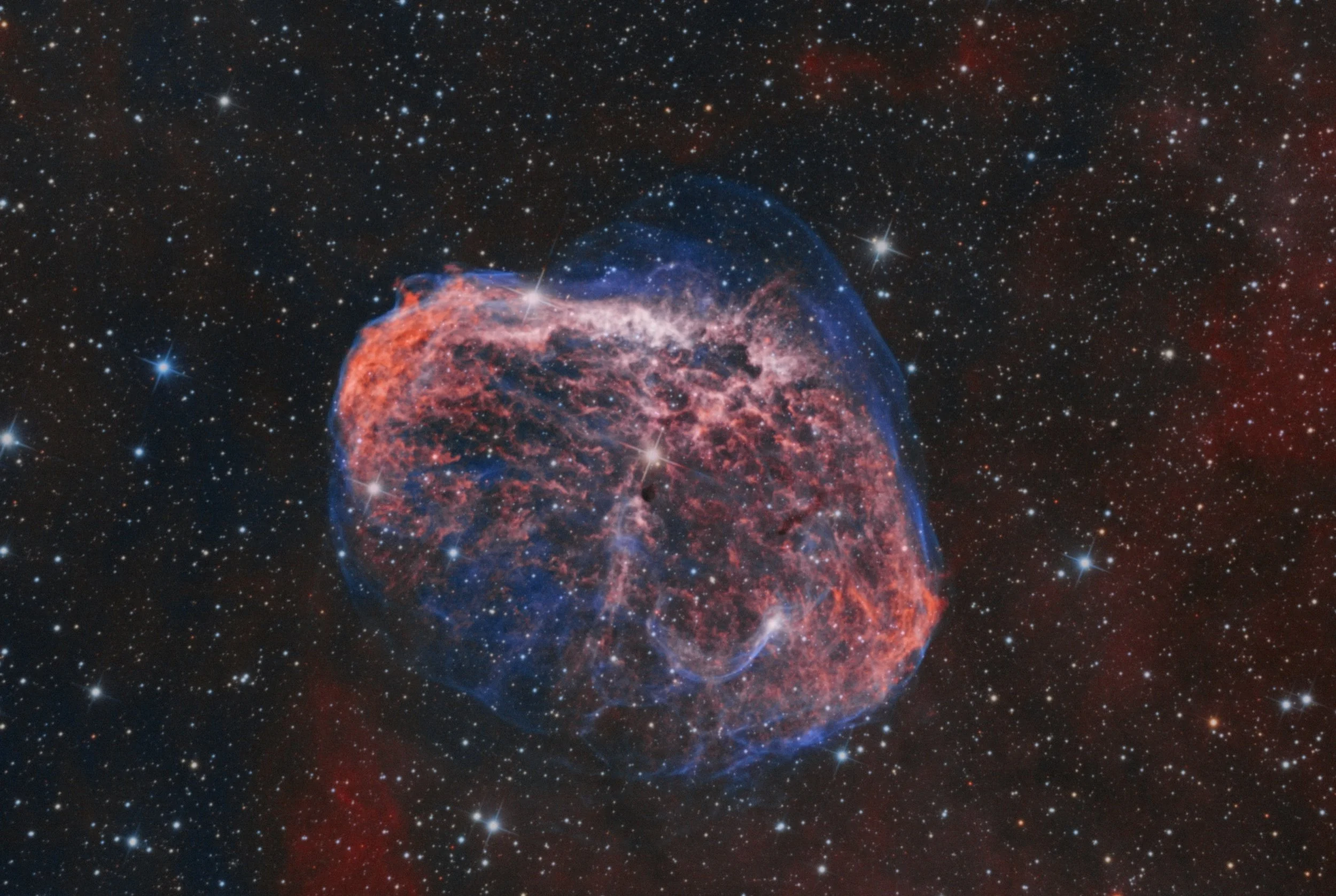 Image Description and Details : I took the Image over severla Nights from Bortle 5 Germany. 56x600s H2 Gain 120 -15C 56x600s O3 Gain 120 -15C Scope : TS-Optics 200mm/8" Ritchey-Chrétien Pro Main Cam : ZWO ASI294MM Mount: Sky-Watcher EQ6 Filter: Astronomik OIII CCD 6nm · Baader H-alpha 6.5nm (CMOS-Optimized) ZWO EFW 7 x 36mm Guiding: TS-Optics Guide Scope 80/600mm Guide Cam: ZWO ASI120MM N.I.N.A · PHD · PixInsight.
