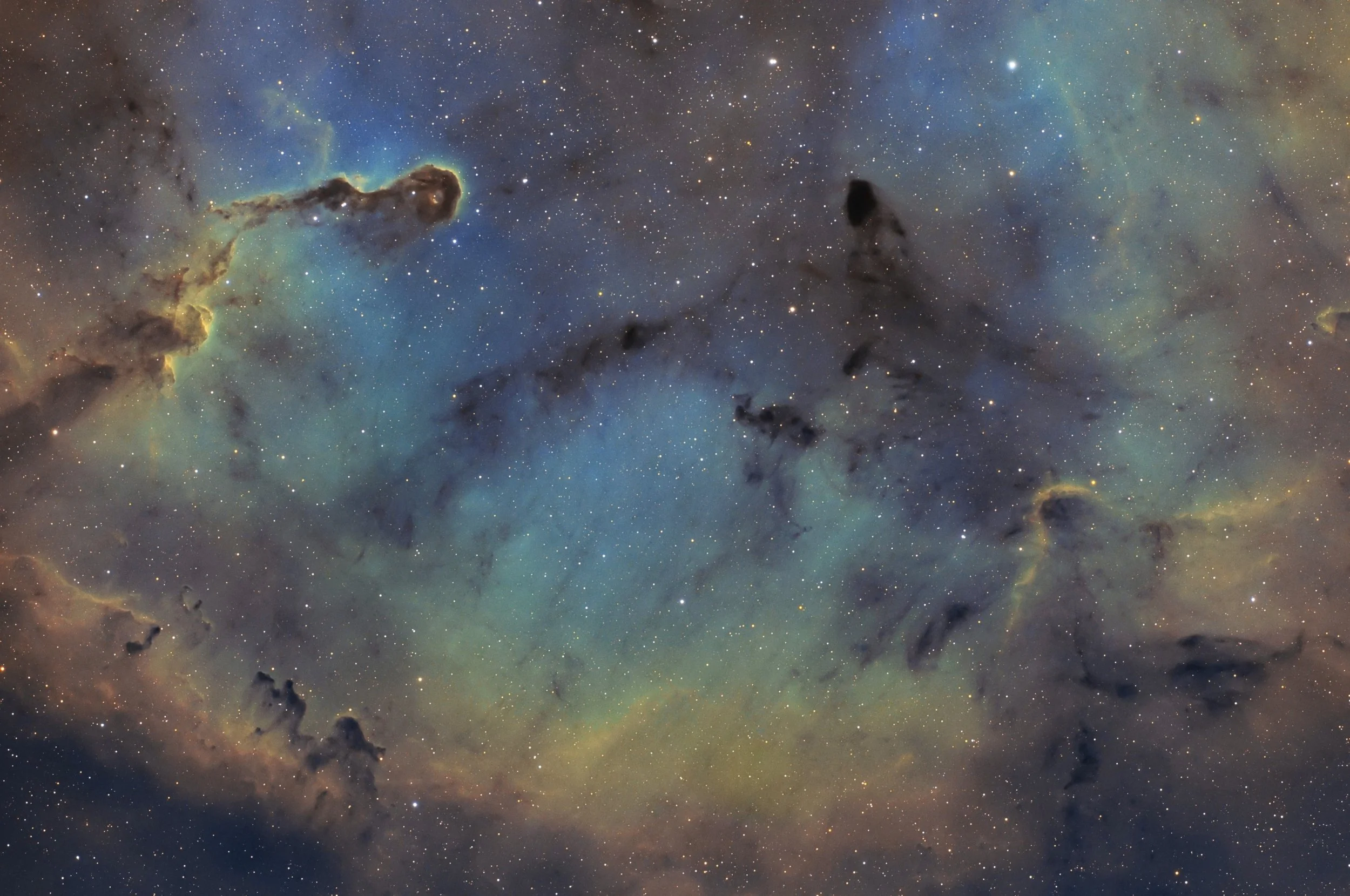 Image Description and Details : Elephant area in Hubble palette. 16 hours total exposure. ZWO 2600MM. Askar 107 APO