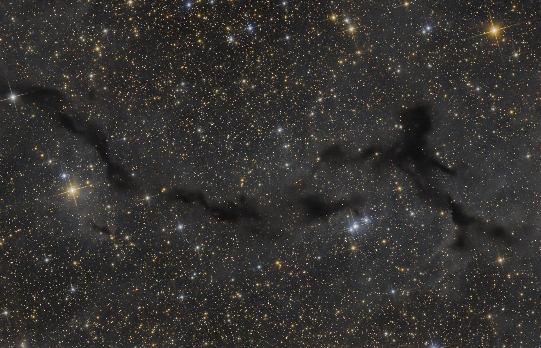 Bernard 150, nestled within the expansive cosmic tapestry, stands as a testament to the dynamic processes shaping our galactic neighborhood. This astronomical structure, intricately detailed in this image, reveals a symphony of interstellar elements at play, including ionized gases, dark dust lanes, and the luminous glow of newborn stars.