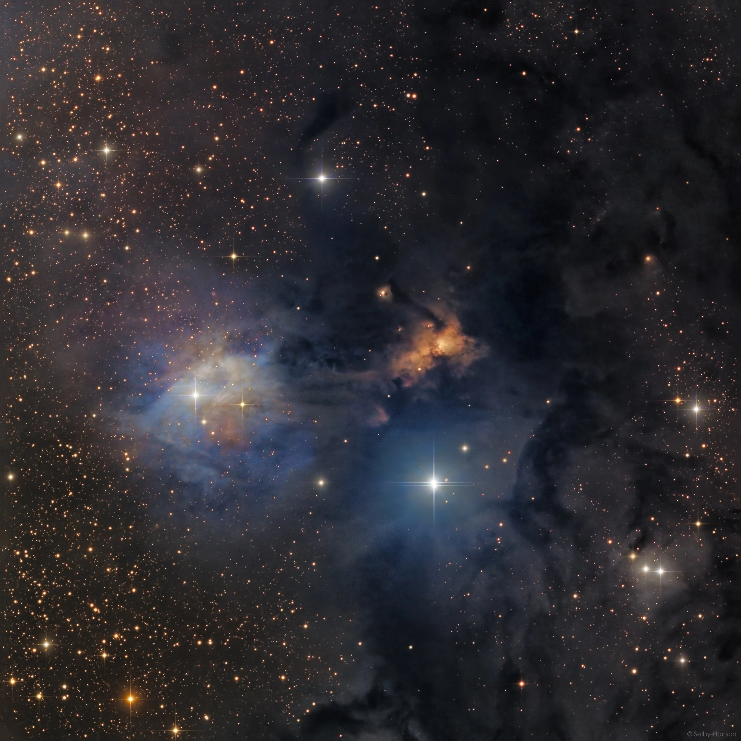 Standing out in contrast to VDB 123 is a bright region of orange nebulosity, the Serpens reflection nebula.