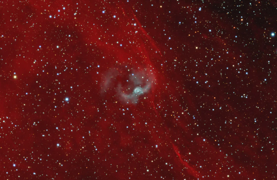 Abell 6 is an example of a bubble-shaped planetary nebula. However, it remains quite faint (Mag = 15). It emits more in OIII than in Ha.