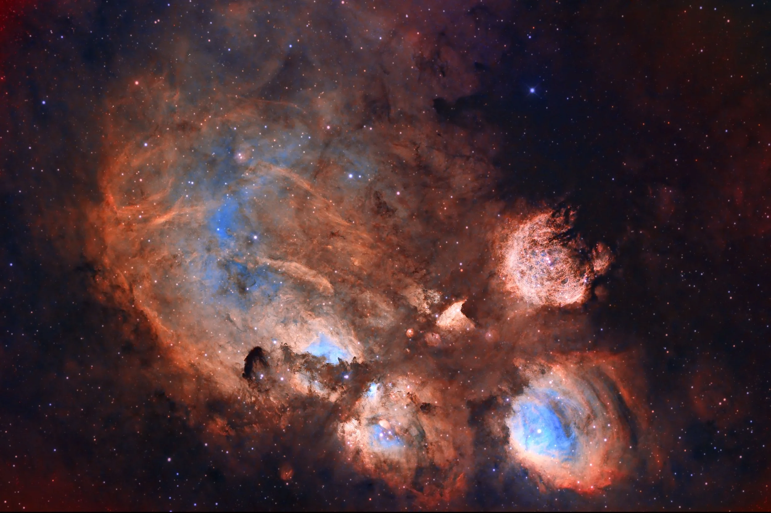 Image Description and Details : At 5,500 light years distant, the Cat's Paw is an emission nebula with a red color that originates from an abundance of ionized hydrogen atoms. Stars nearly ten times the mass of our Sun have been born there in the past few million years.