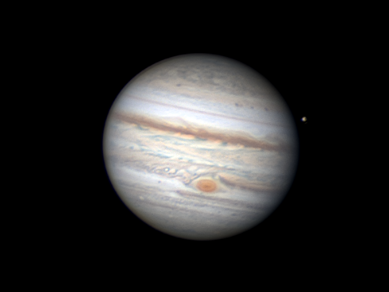 Image Description and Details : A long awaiting window of good seeing finally transpired over my home observatory in Pembroke Pines, Florida early on Sunday morning July 3rd. The image is the result of 120 seconds capture at 13ms exposure, and stacked the best 46% of the frames. Europa and the Great Red Spot adding to the field of view. Hardware used: Celestron C11 Edge HD QHY 5-III 462c Camera ZWO Atmospheric Dispersion Corrector TeleVue 2.5 Powermate Primalucelab Eagle2 Pro Seeing conditions 4/5 Captured at 10:00 UT 07/03/2022 CM1=122.5 CM2=28.5 CM3=296.4 Earth distance at time of capture - 4.790 AU
